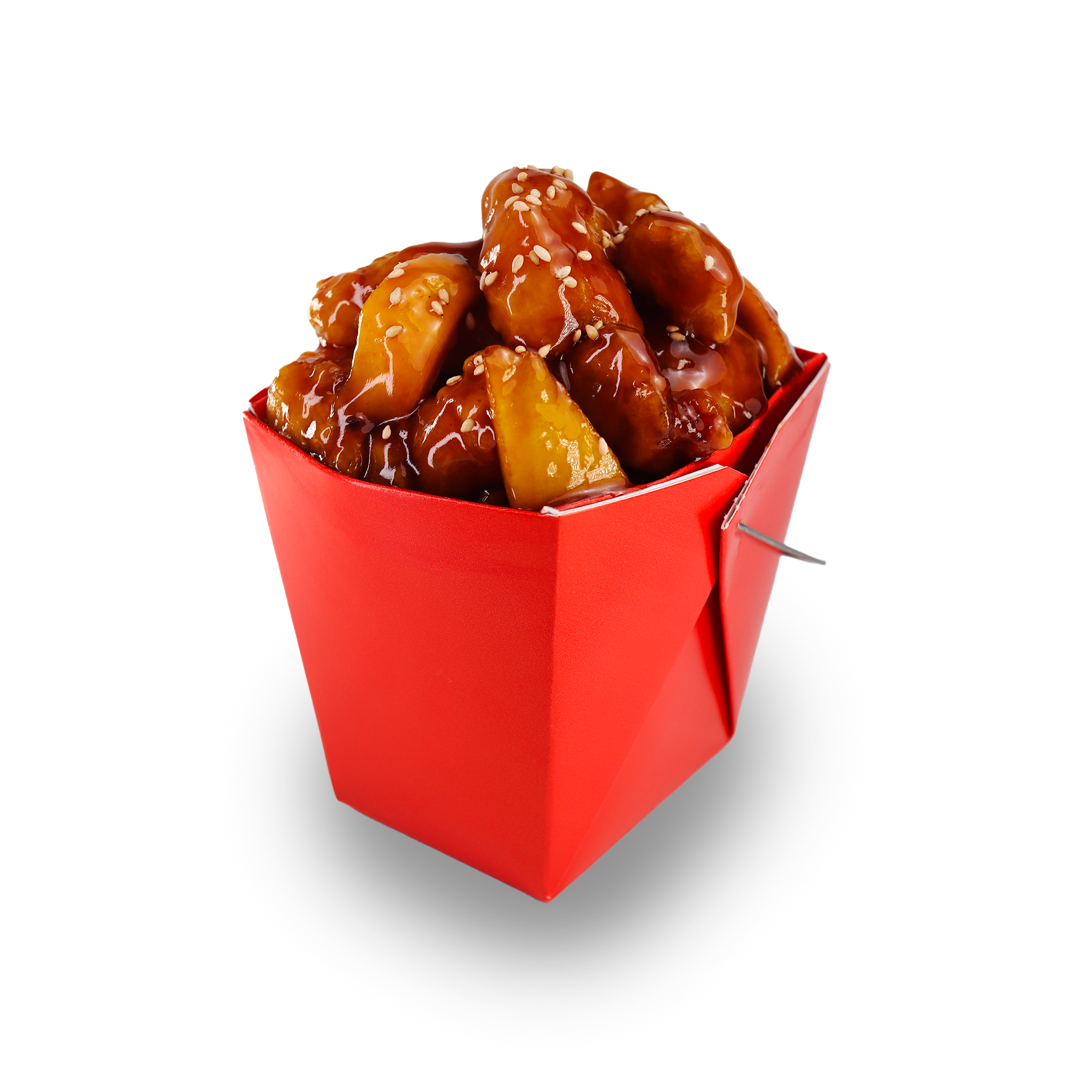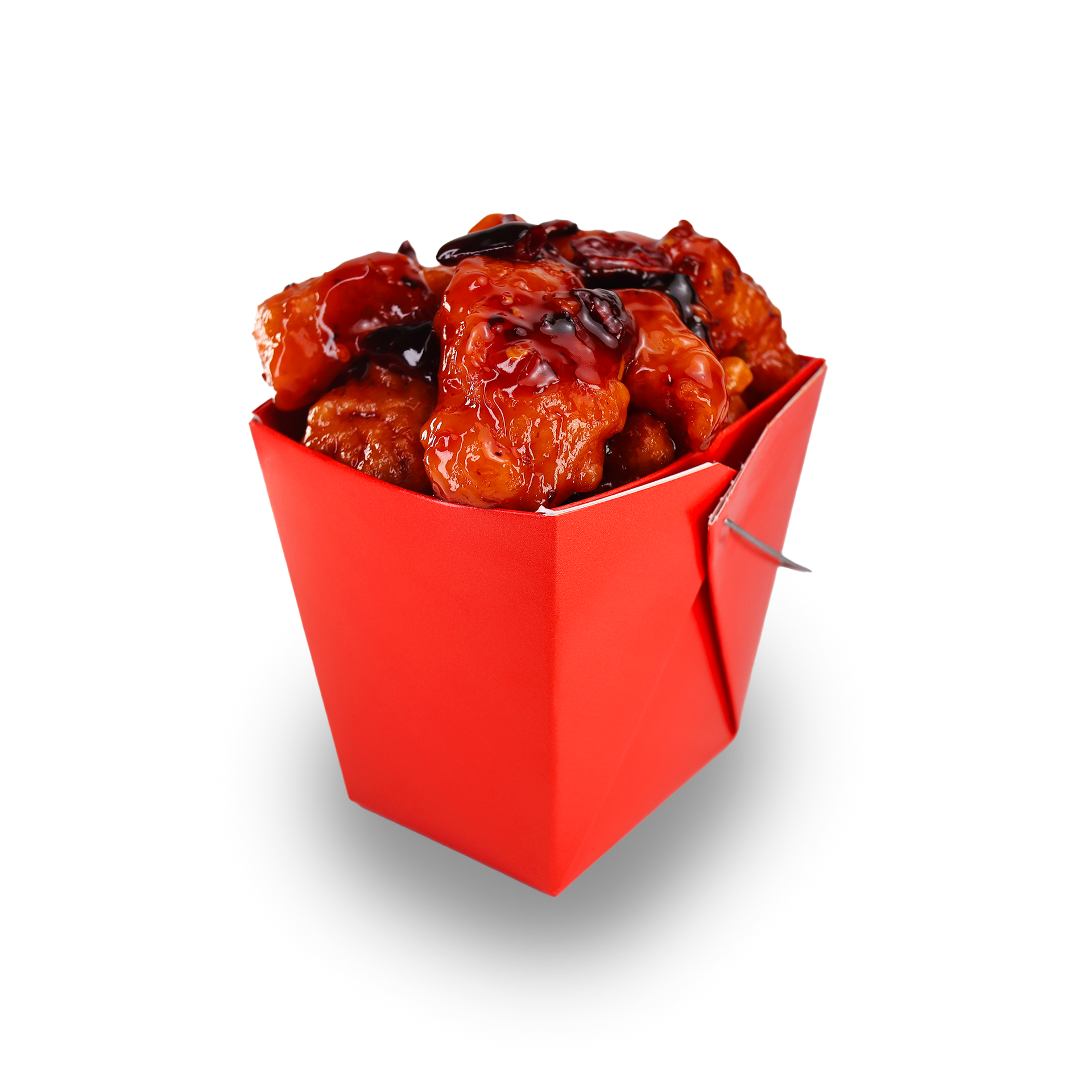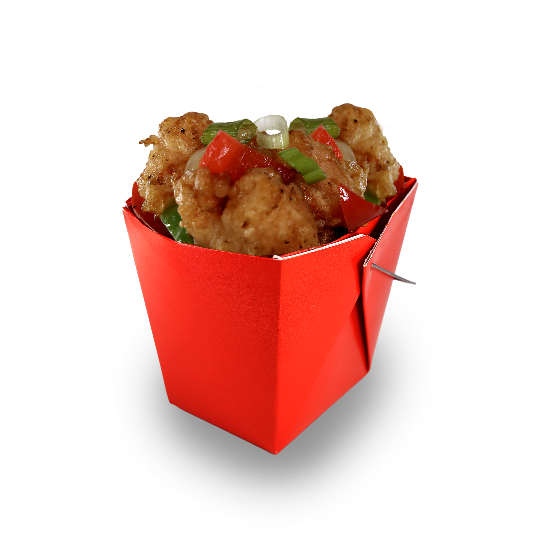 A blend of crispy fried chicken tossed in a bold, tangy, and slightly spicy sauce with red chili peppers.