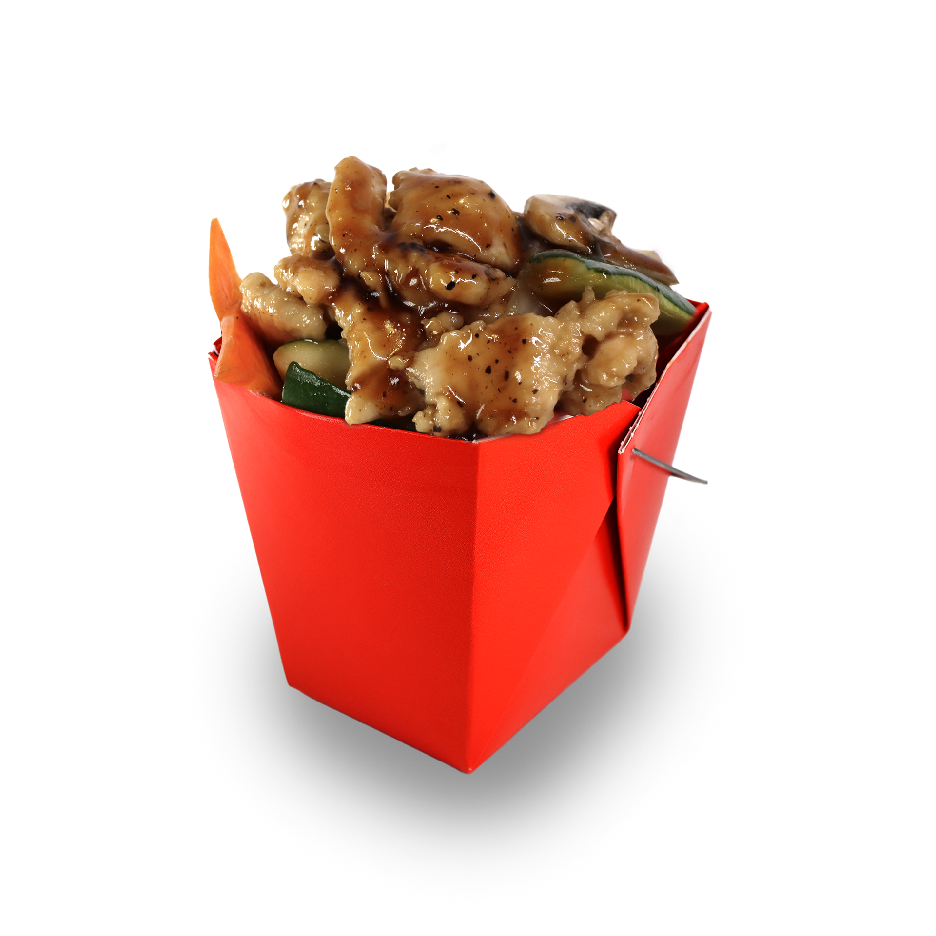 Tender strips of chicken and stir-fried vegetables with teriyaki sauce.